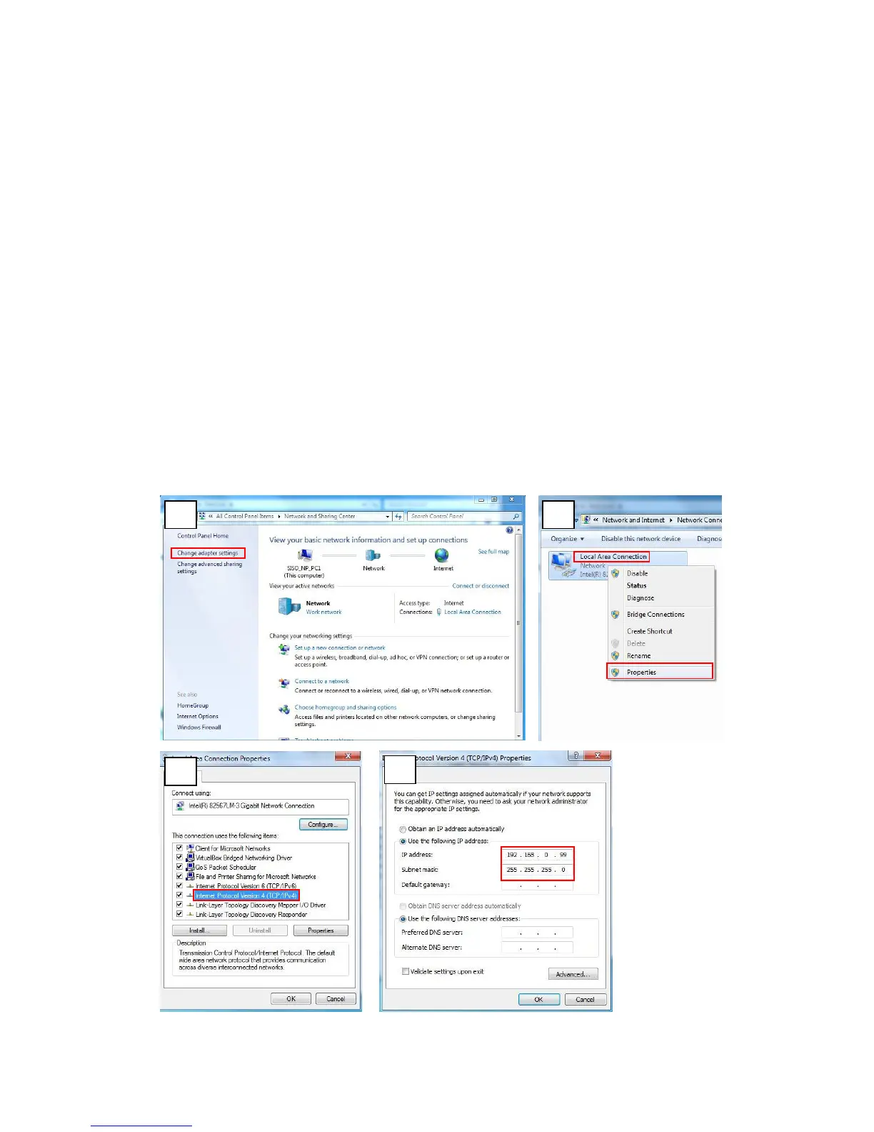 In the following example, based on Windows 7, we will configure the IP address to 192.168.0.99