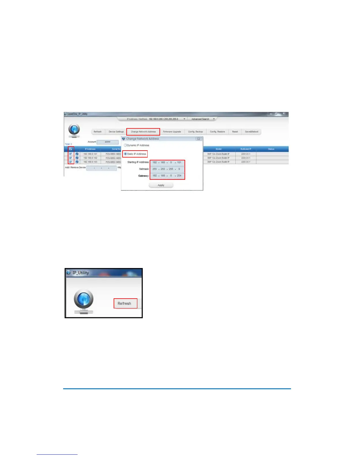 Later, by pressing the “Refresh” button of the IP Utility, you will be able to see the list of cameras