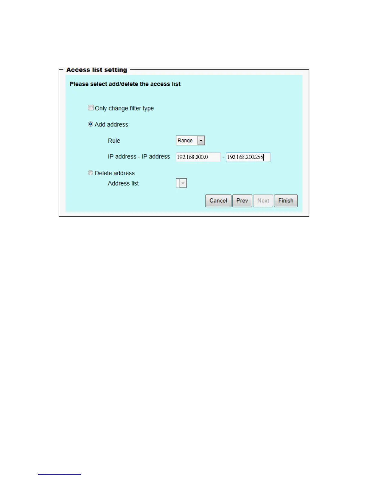 “Range” This rule allows the user to assign a range of IP addresses to the Allow/Deny