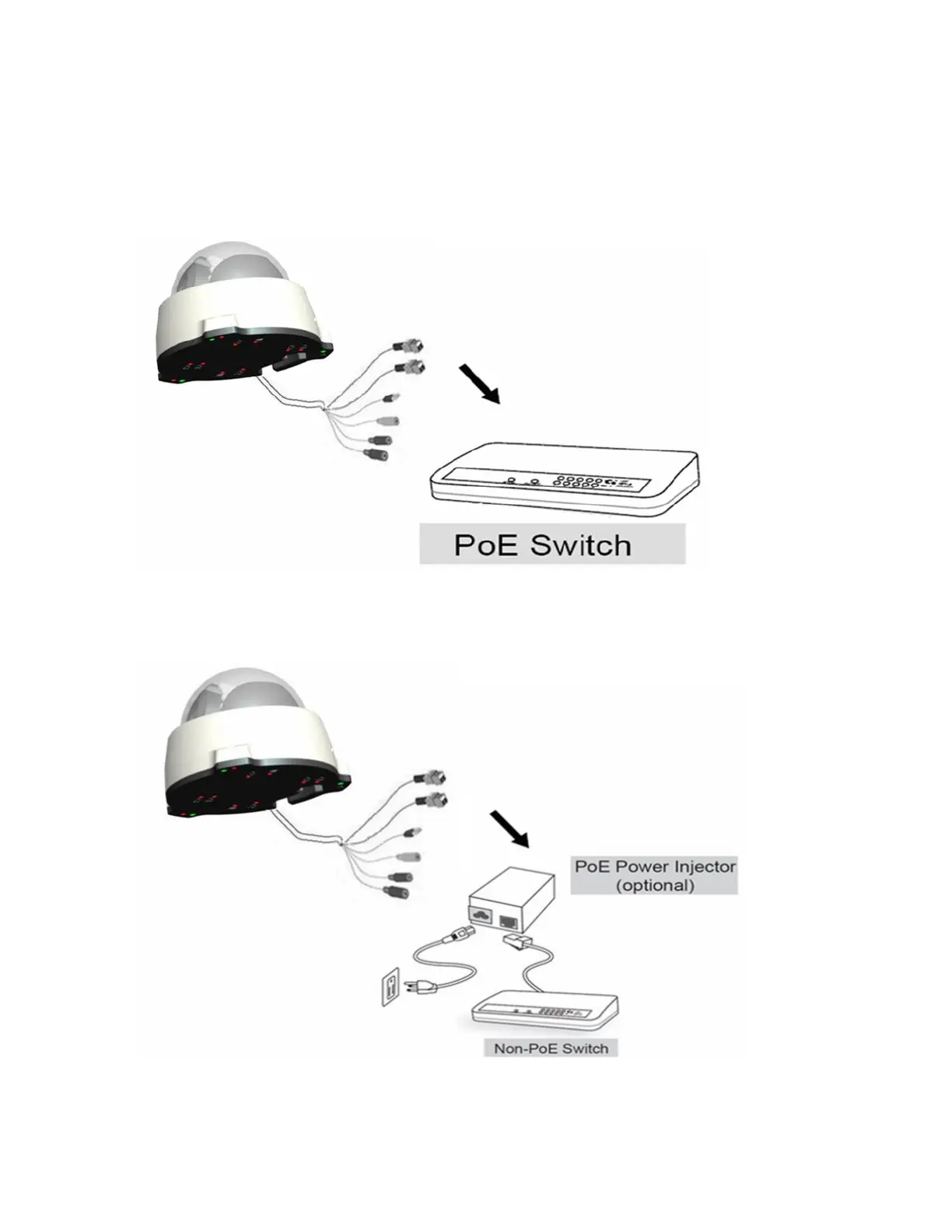 single Ethernet cable. Follow the below illustration to connect the Network Camera to a