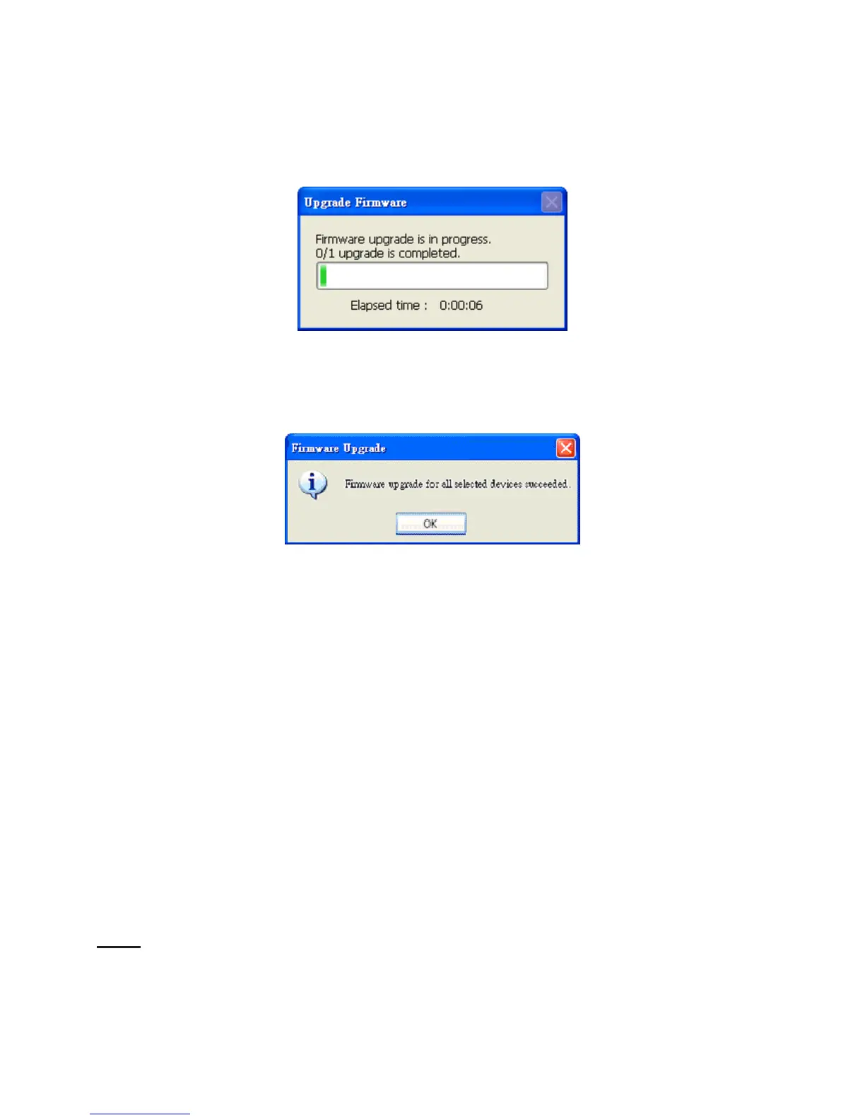 Clicking on the “Start Upgrade” button to upgrade the firmware of the selected device(s), and
