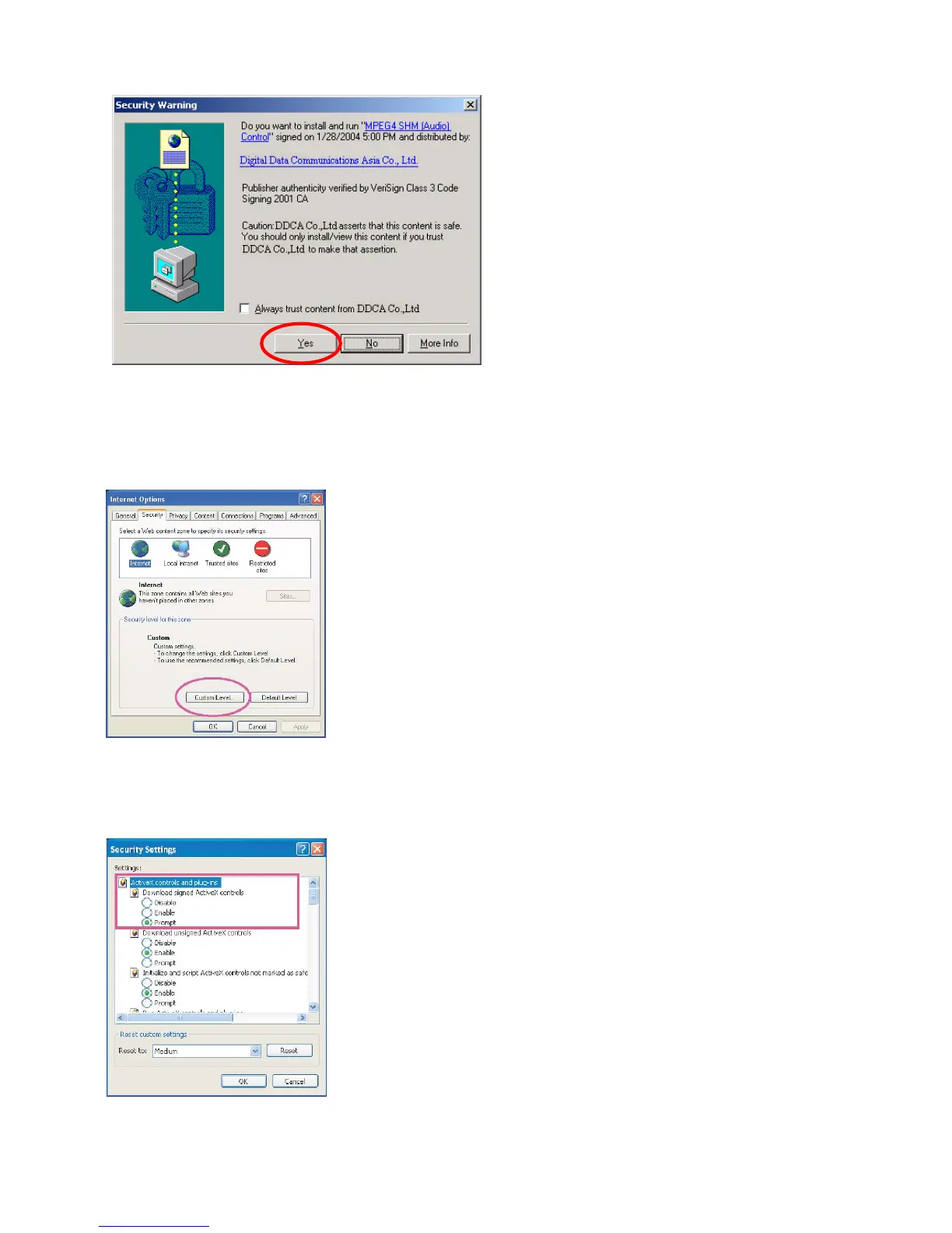 If you see a dialog box indicating that your security settings prohibit running ActiveX®