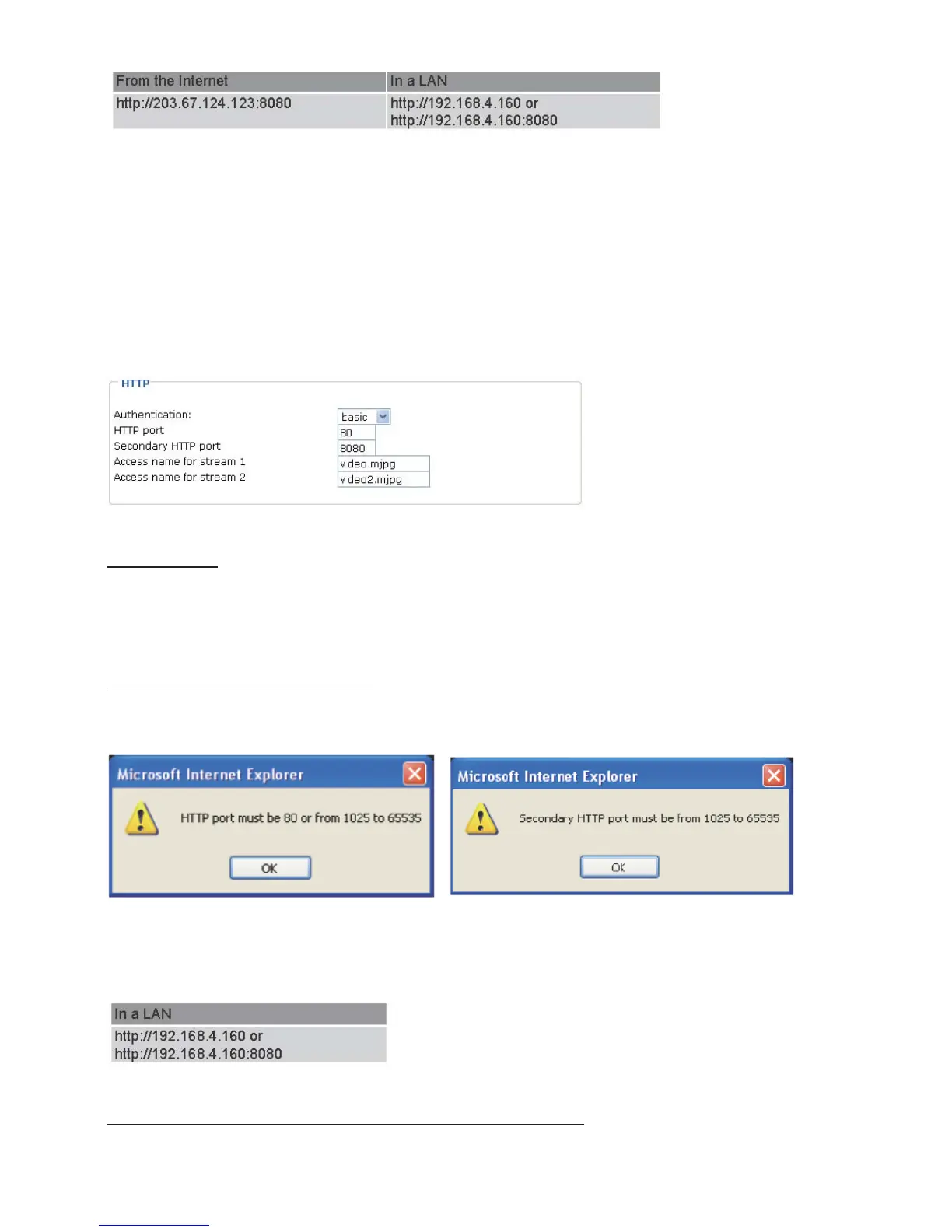 To access the Network Camera within a LAN, both HTTP port and secondary HTTP port can