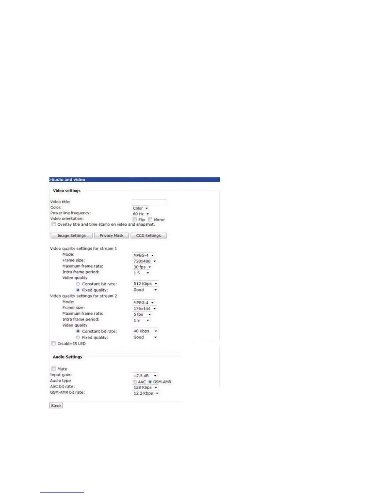 This section explains how to cofigure audio and video performances of the Network Camera. It