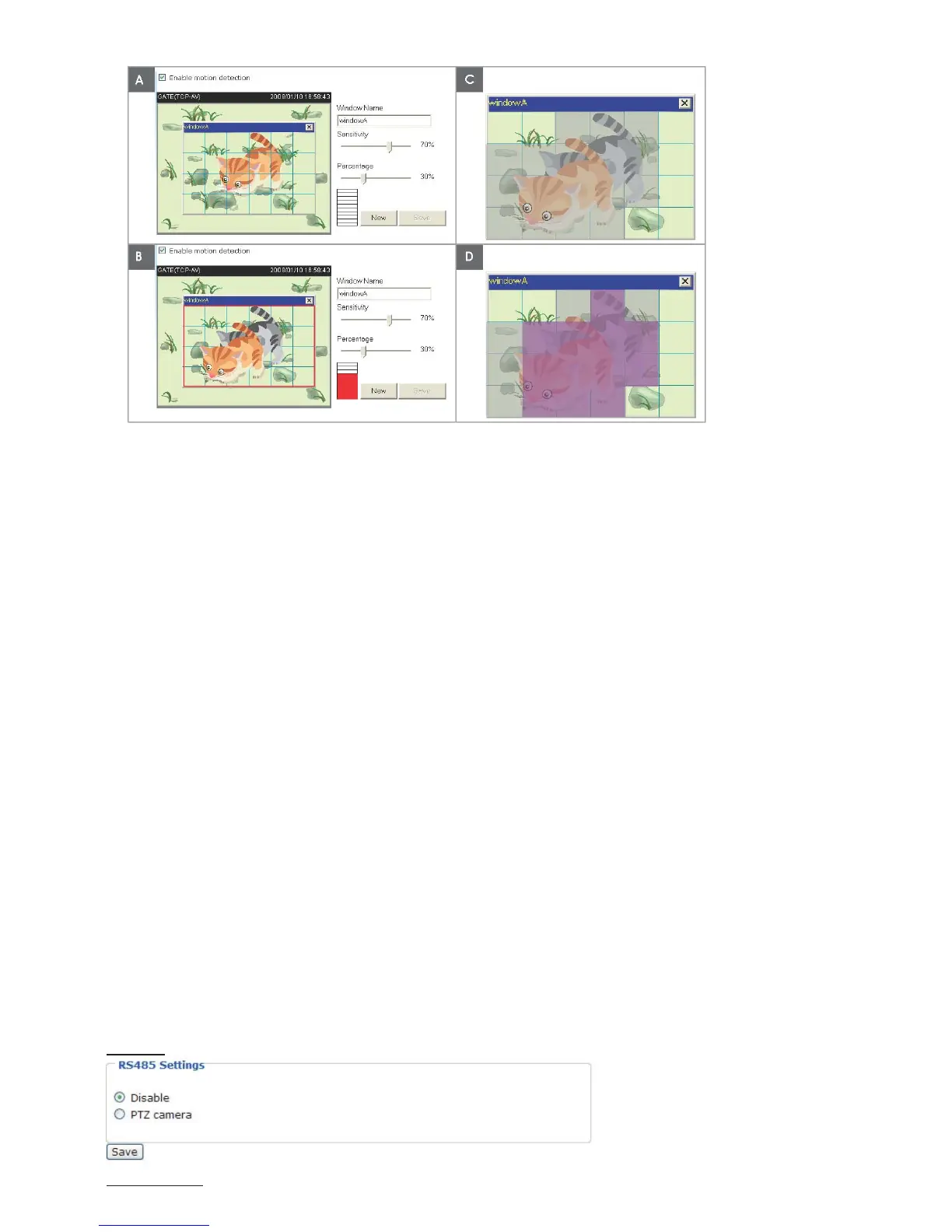 There are two parameters for setting the motion detection: Sensitivity and Percentage. In the