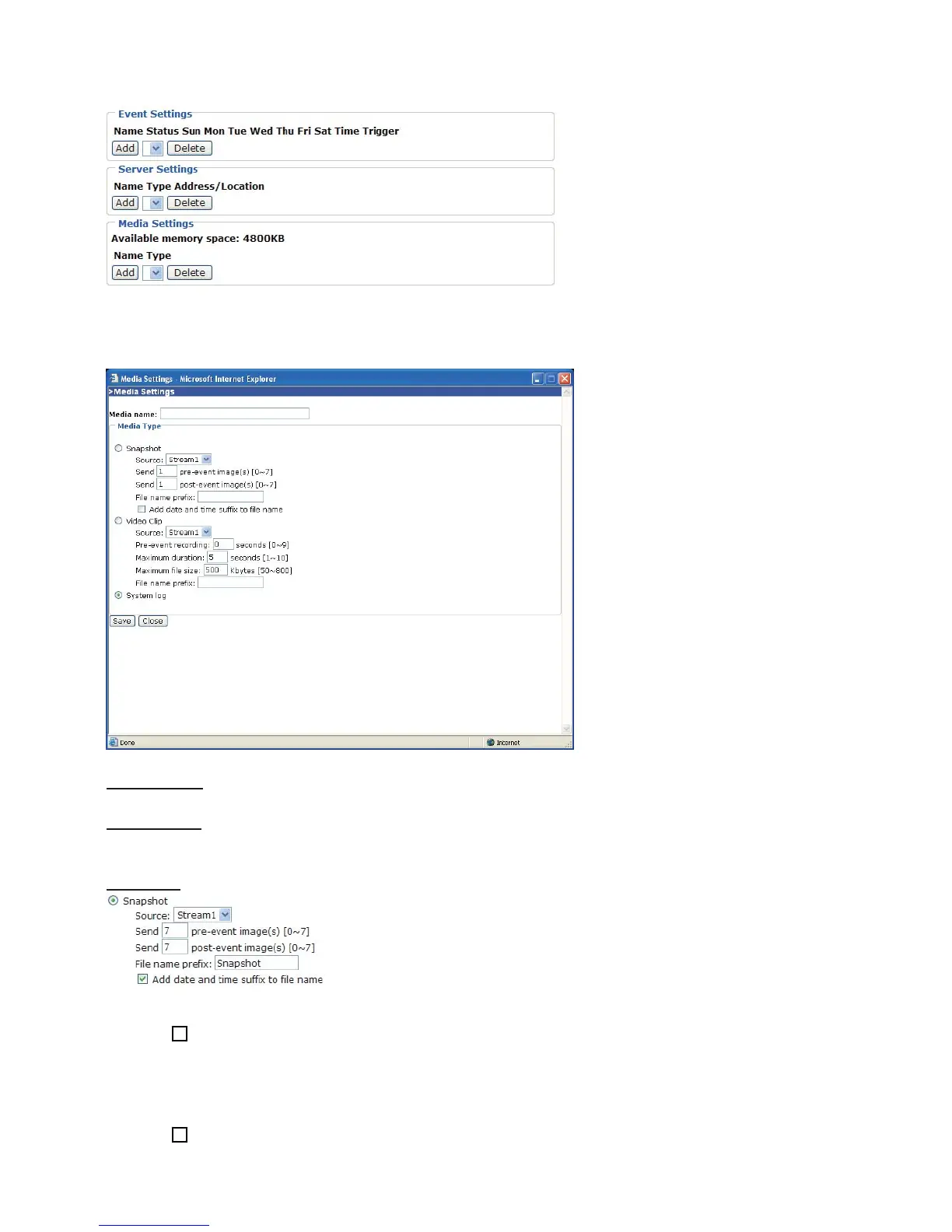 ■ Source: Select to take snapshots from stream 1 or stream 2.