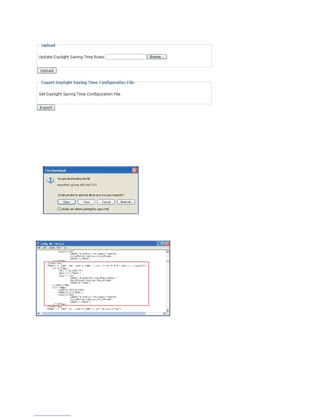 1. In the Export Daylight Saving Time Configuration File Column, click Export to export an