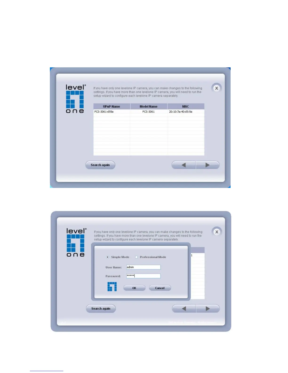 3. Select the Network Camera from the survey list and enter the user name and password. The