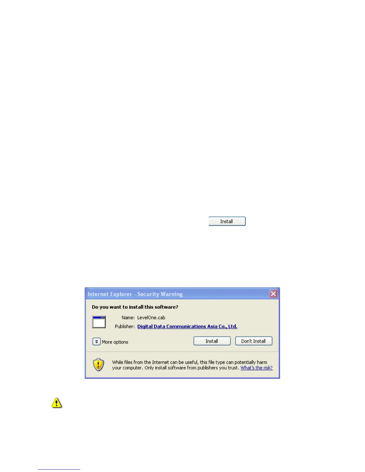 for permission to install a new plug-in for the Network Camera on the Internet Explorer.