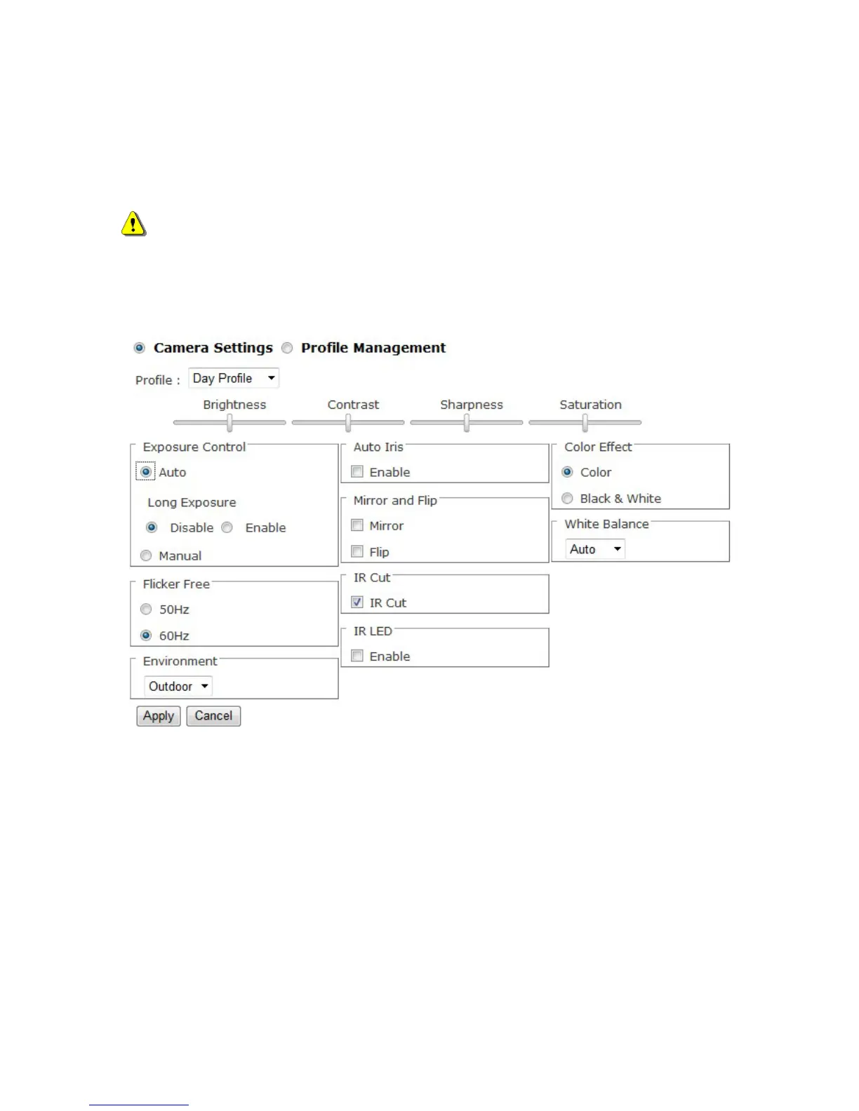 Profile - Select a profile from the drop-down menu to change profile settings.