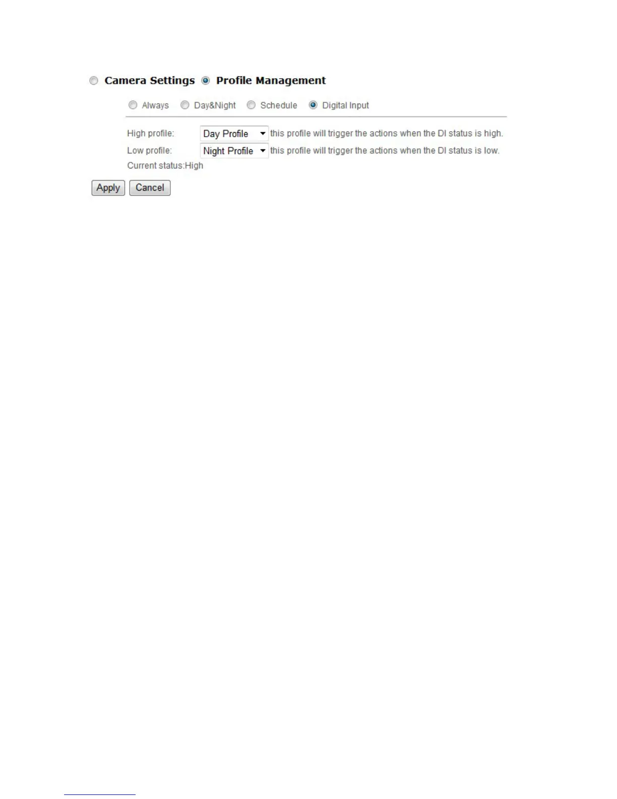 Digital Input - Select Digital Input to have the profile management controlled by an external