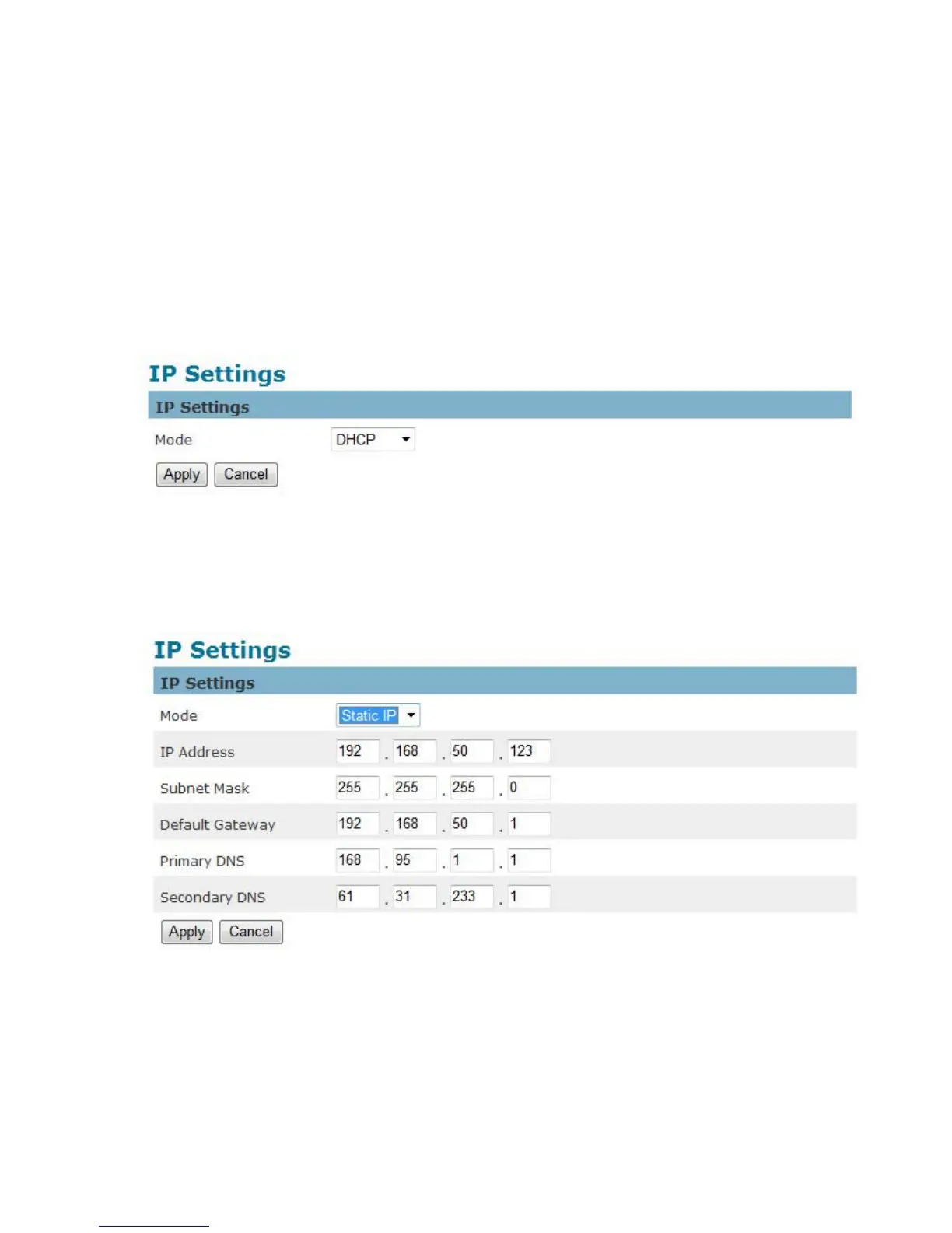 1. DHCP – If this option is selected, the camera will automatically obtain an available dynamic