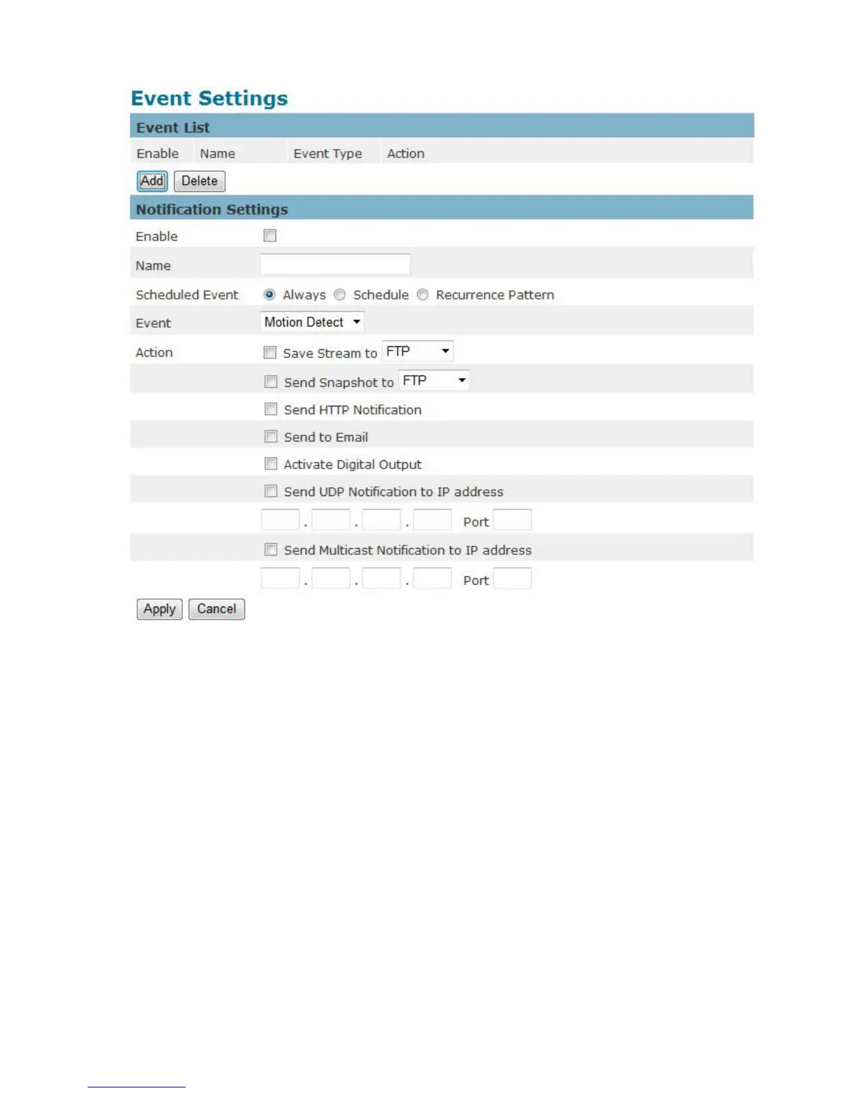 1. Check “Enable” and enter a descriptive name for the event schedule.
