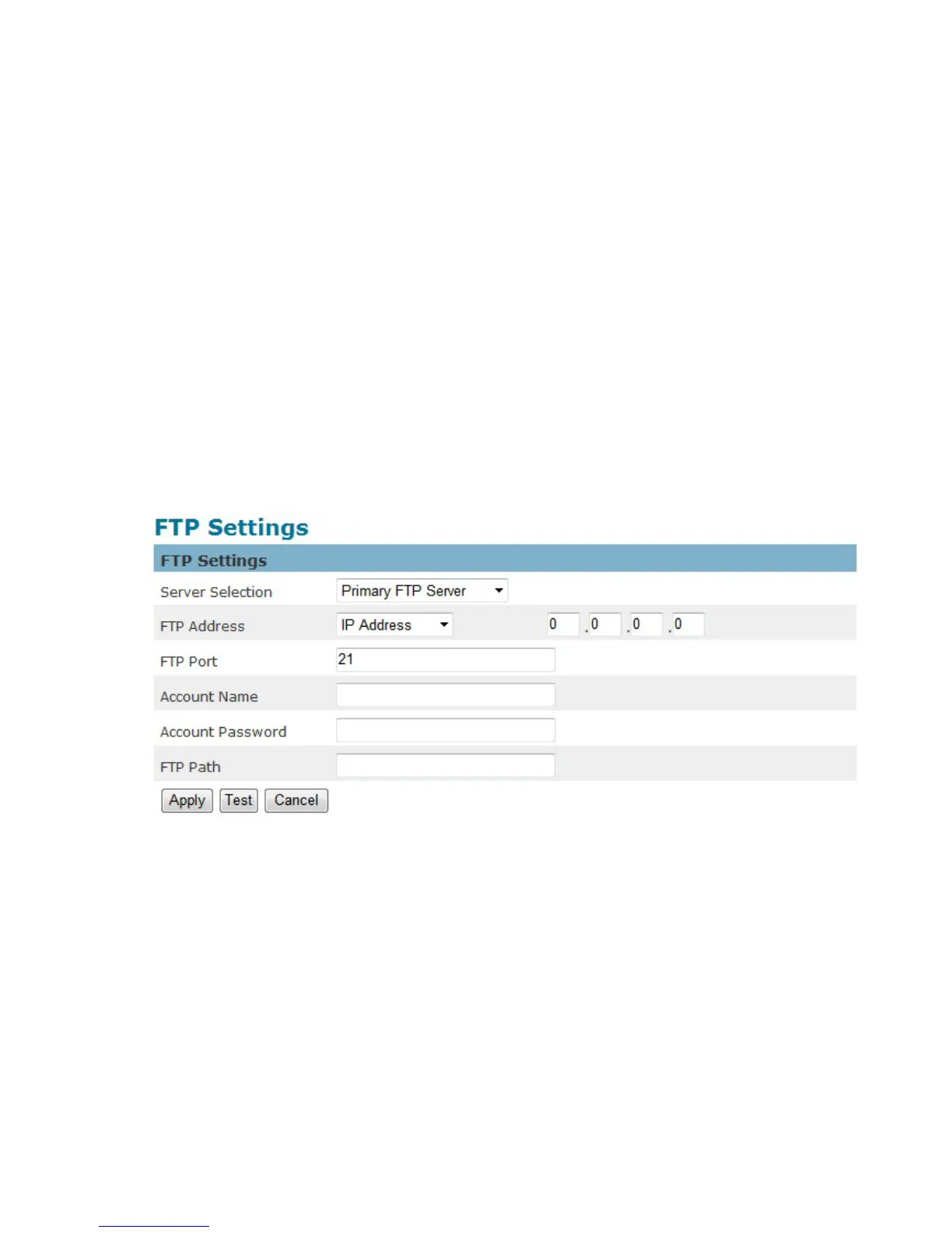 By default, the FTP port server is set to 21. Enter the account name, password and FTP Path to