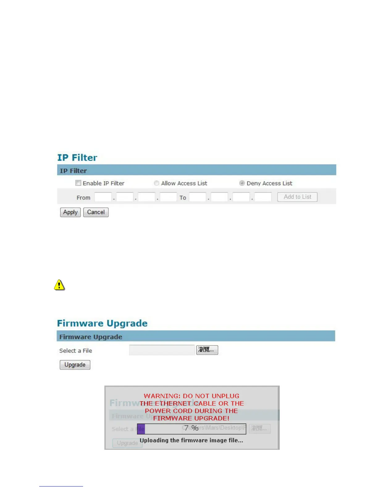 The IP Filter is used to filter the IP addresses which are able to access the network camera.