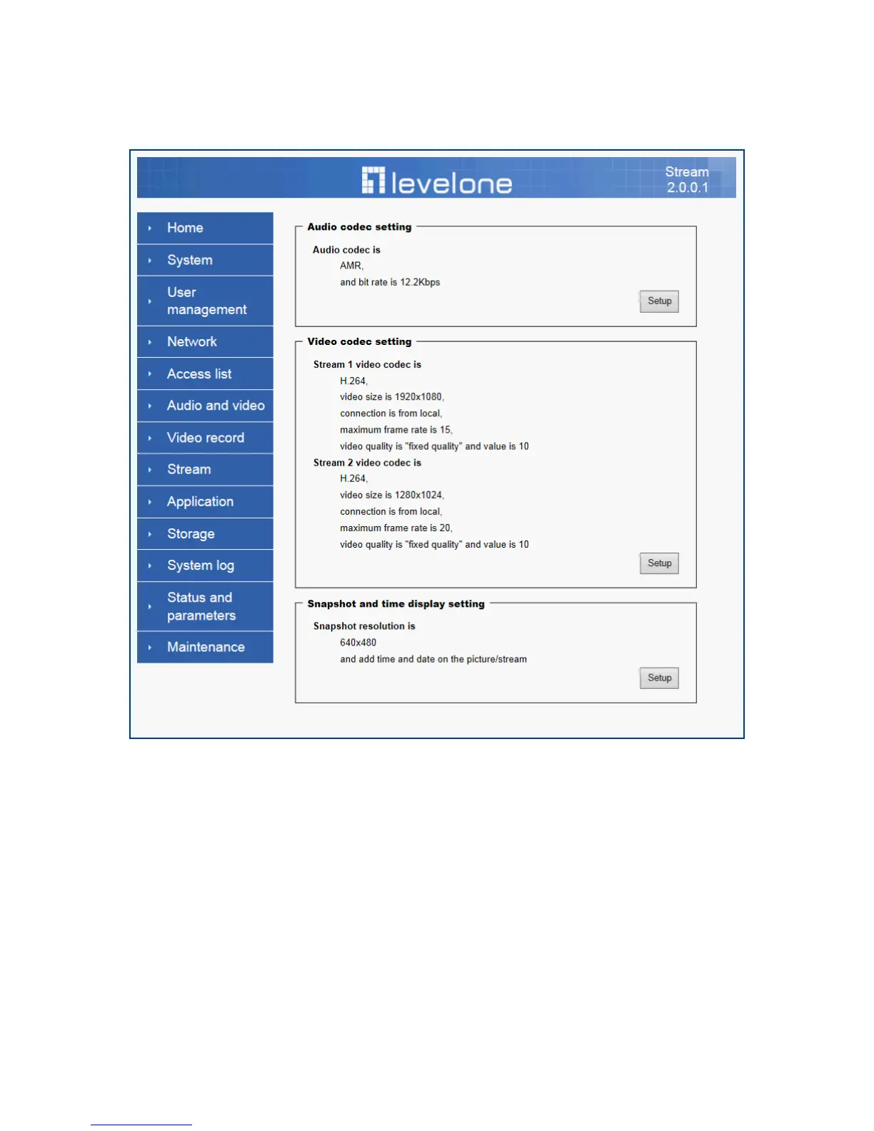 (1) “Select Stream” The Network Camera supports “Stream 1”and “Stream 2”.