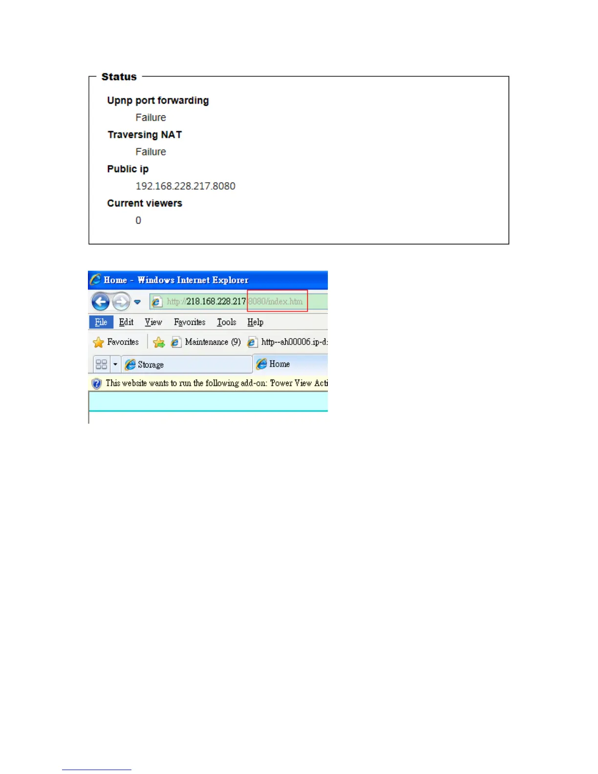 6.Type IP address:8080 at browser. Then you can see camera through Internet.