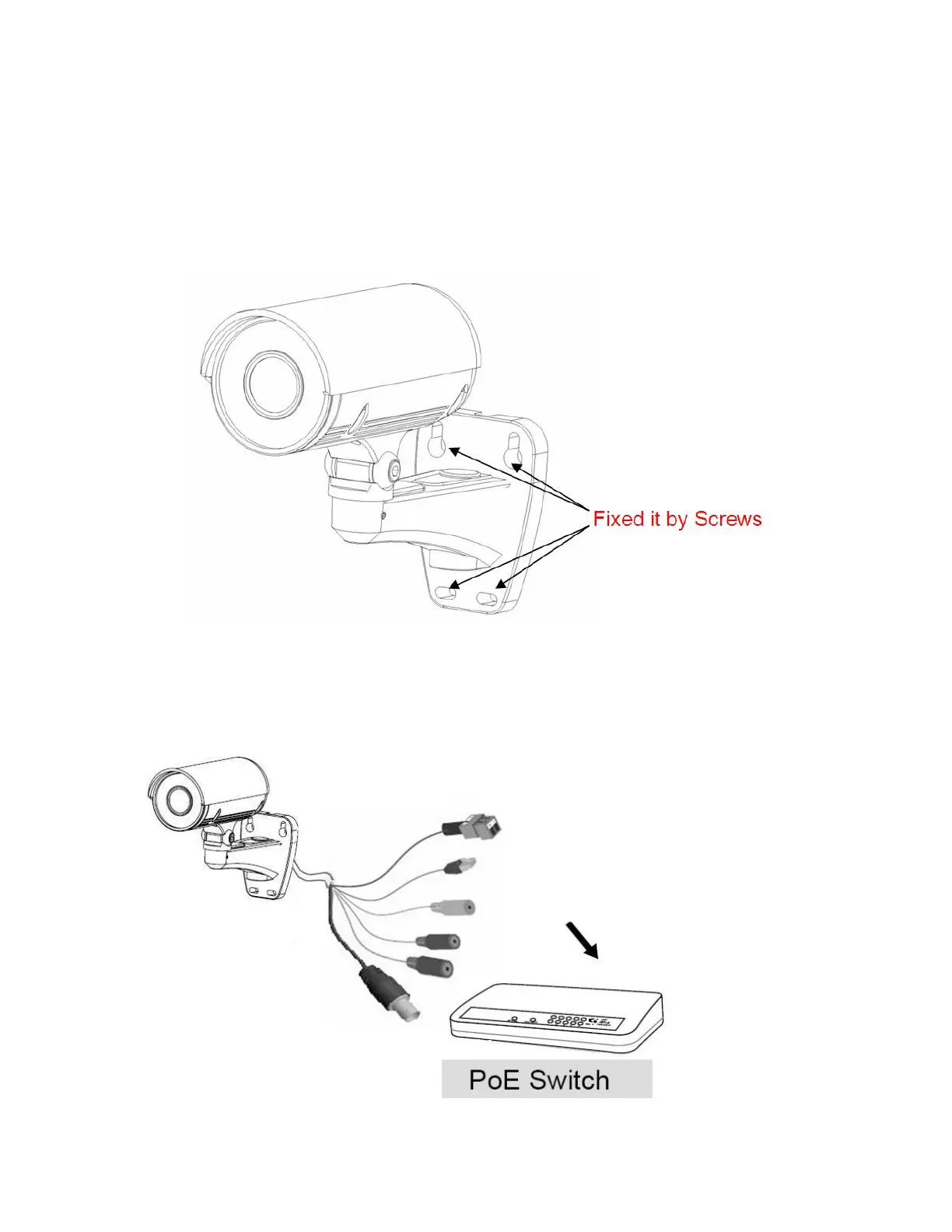 Use screws to fix the Network Camera onto the ceiling or wall.