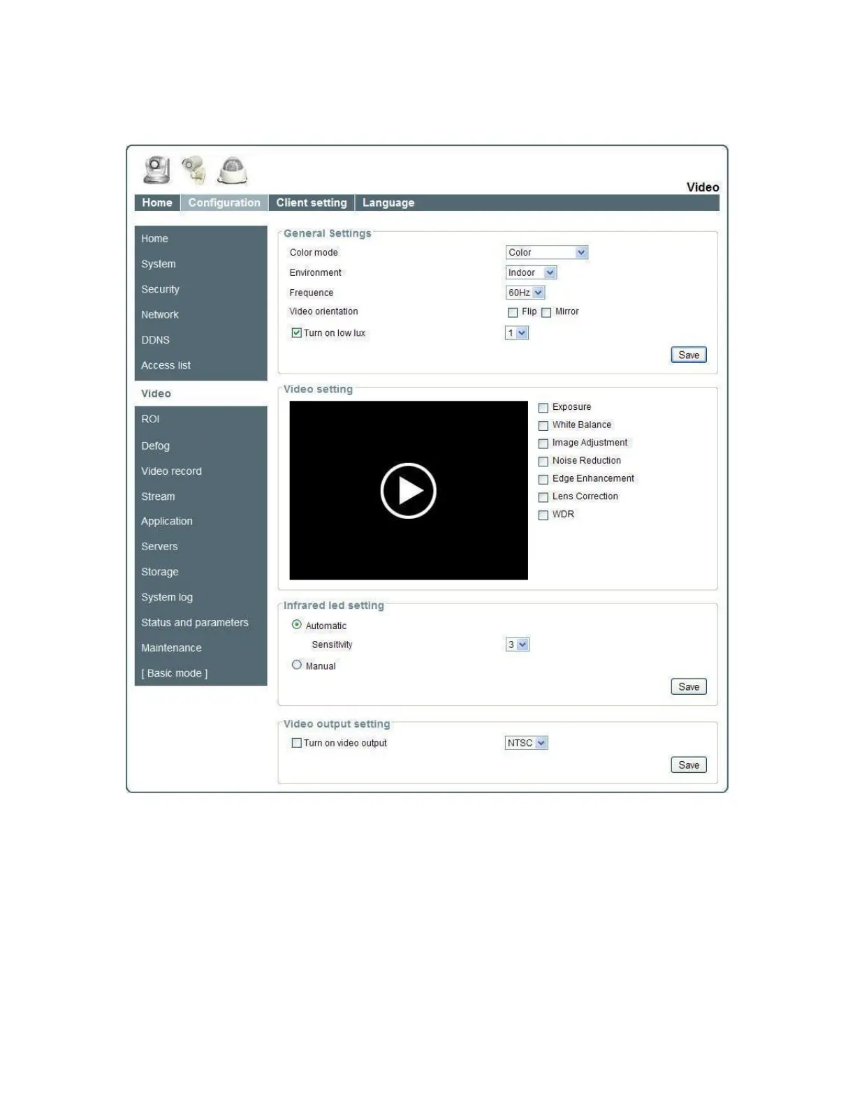 (1) “indoor” This option is usually selected when the Network Camera is placed