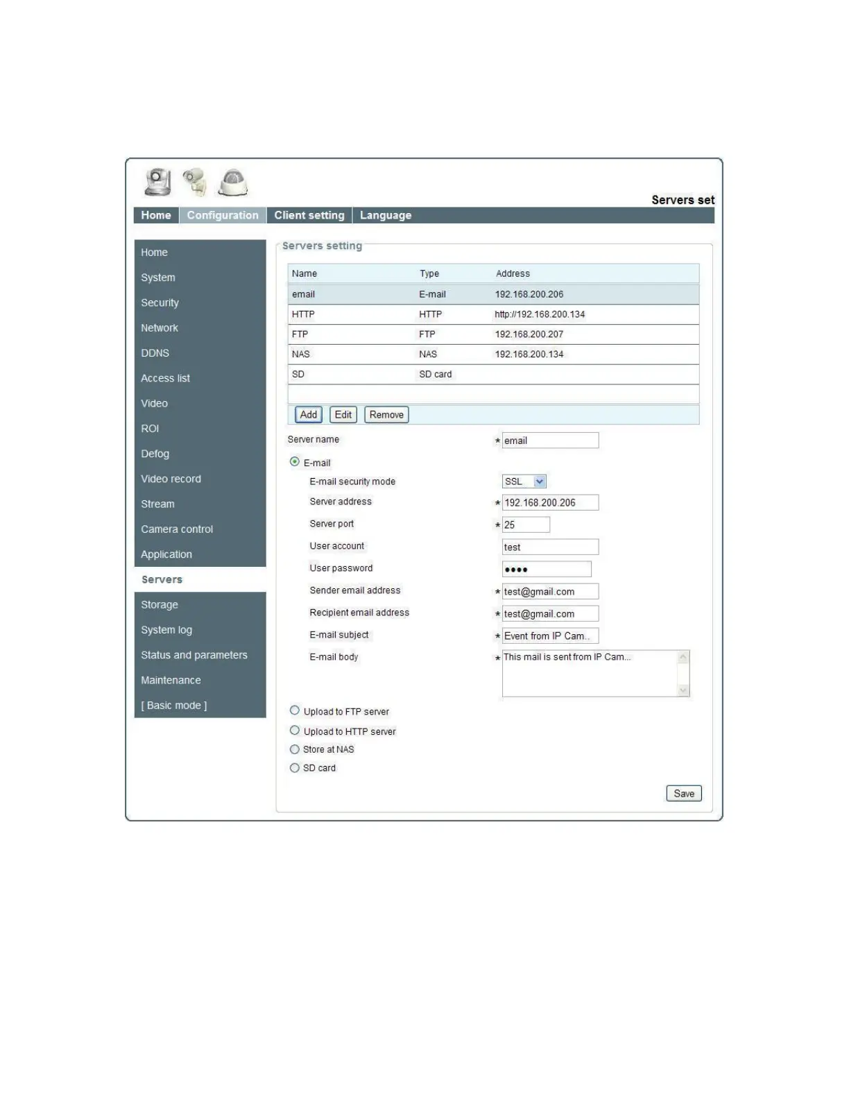 Click the Add Server button on Event Settings page to open the Server Setting page. On