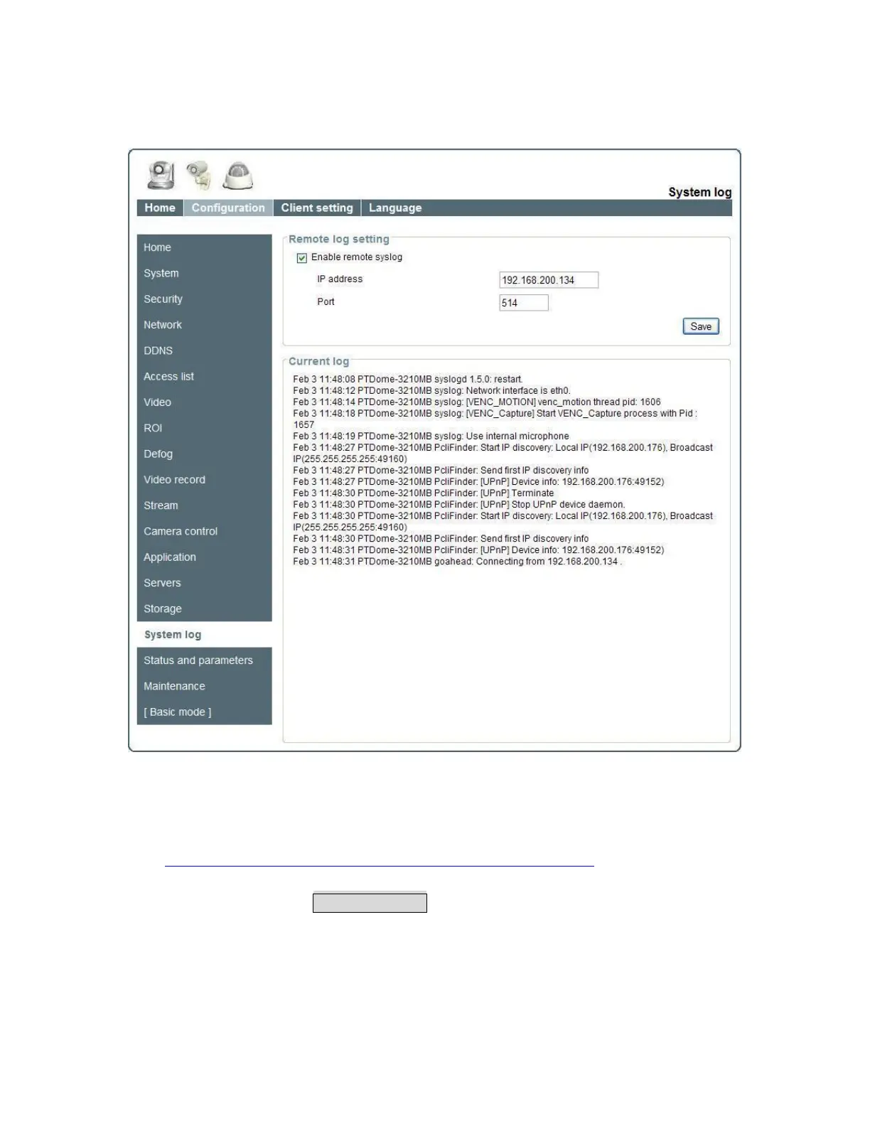 3. When completed, select Enable remote log and click Save to enable the setting.