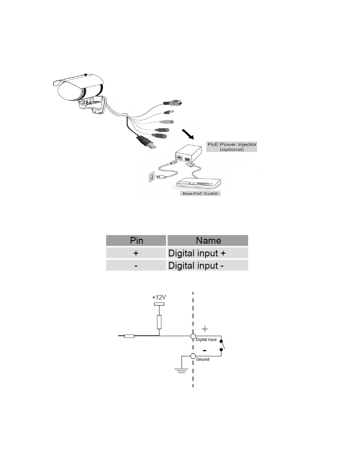 Use a PoE power injector (optional) to connect between the Network Camera and a