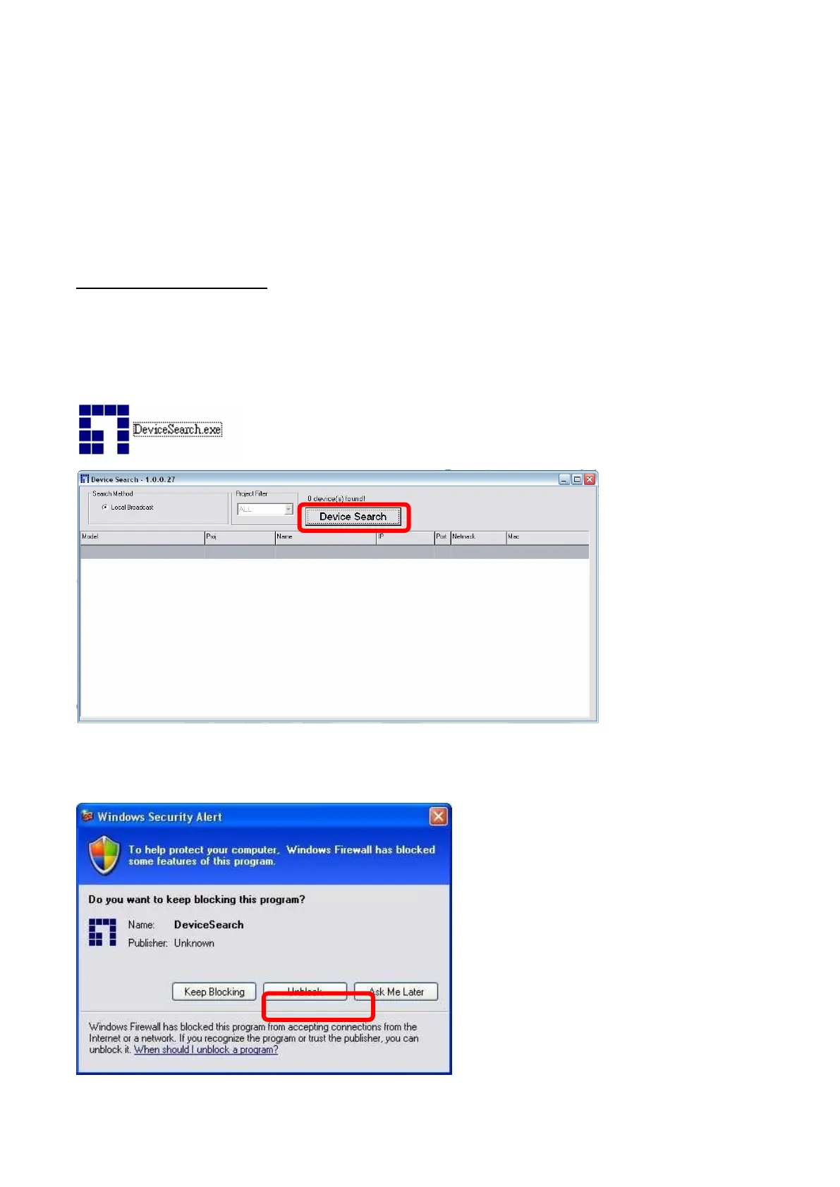 program: DeviceSearch.exe, which can be found in “DeviceSearch” folder in the supplied