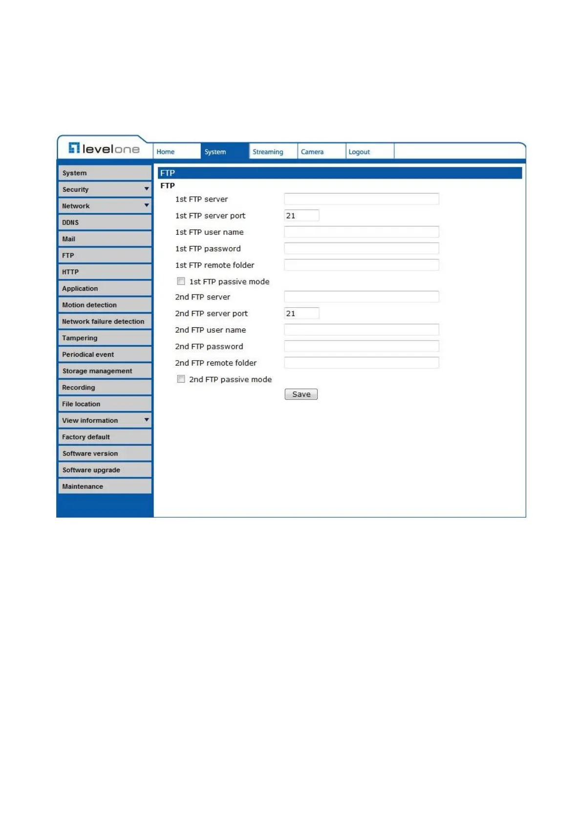 The FTP setting can be found under this path: System> FTP.