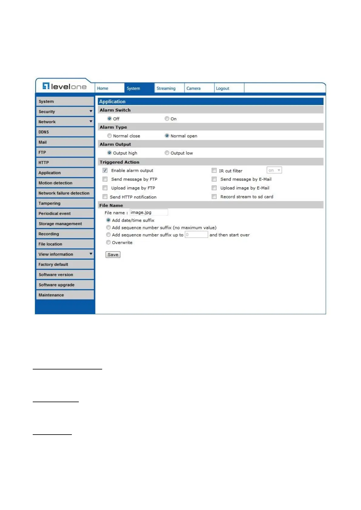The IP Camera equips one alarm input and one relay output for cooperating with alarm