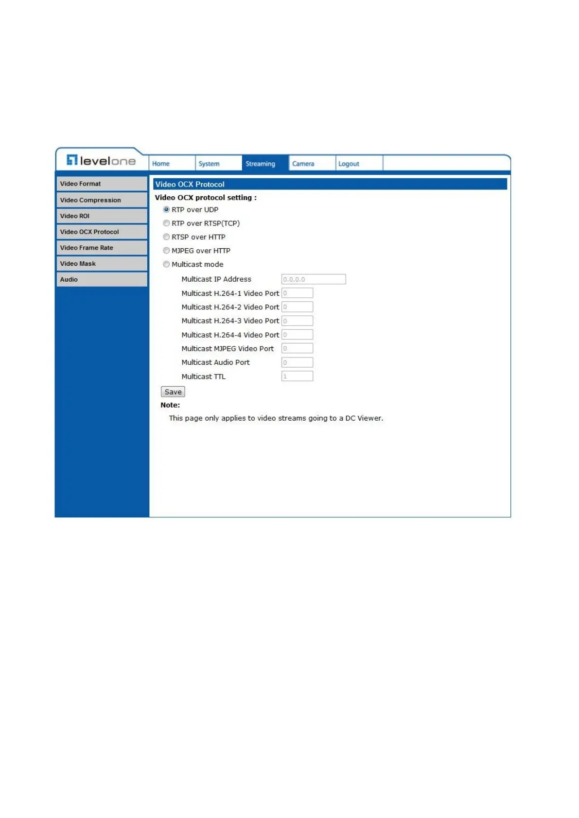 case of multicast networking, users can select the Multicast mode. Click on <Save> to