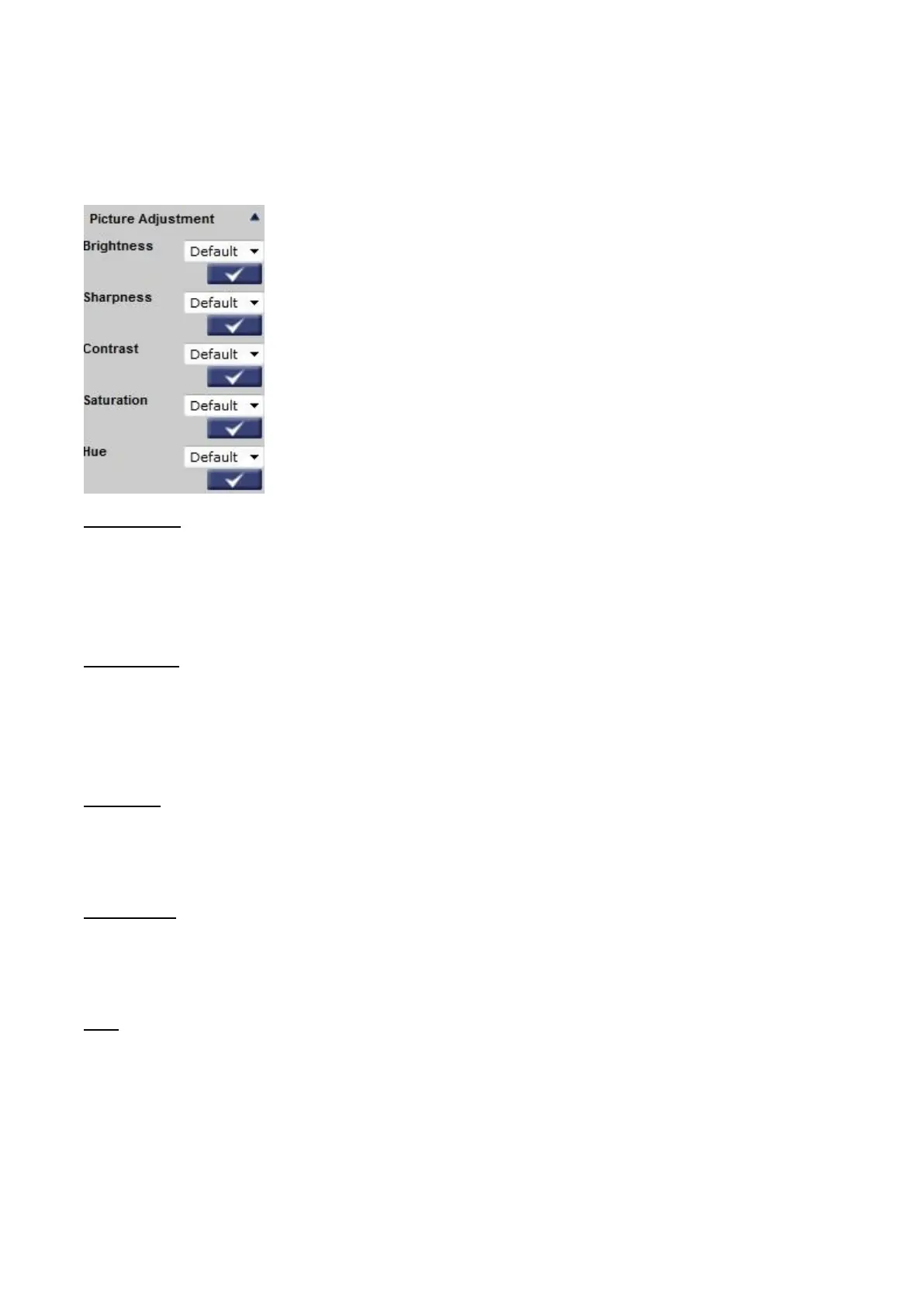 Camera image saturation level is adjustable; please select ranging from -6 to +19. Click on <