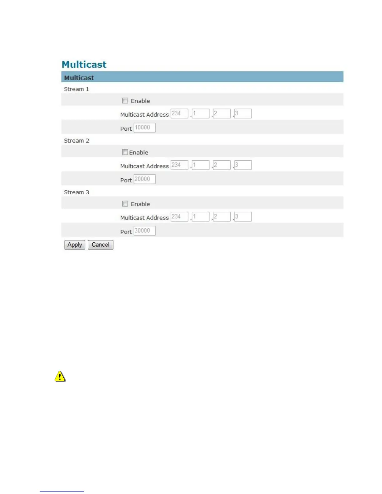 Click Enableto enable Multicast stream 1, Multicast stream 2 or Multicast stream 3. The