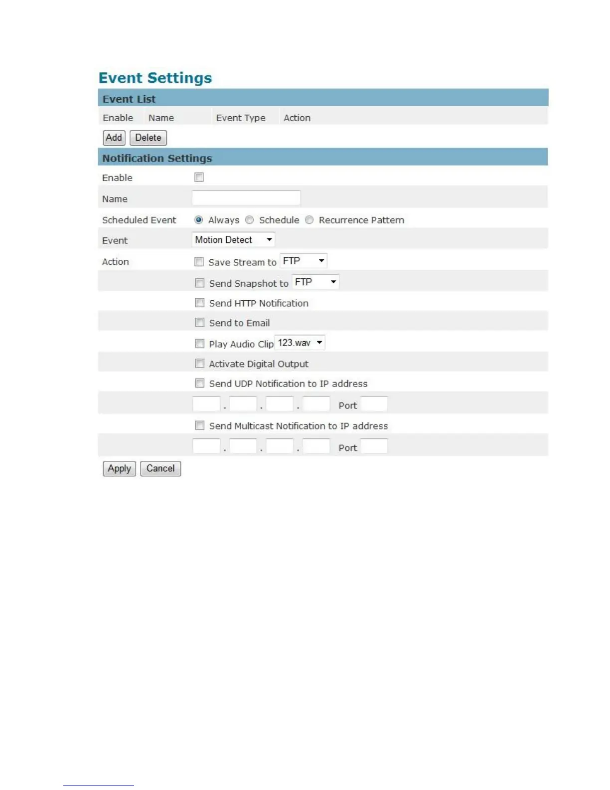 1. Check “Enable” and enter a descriptive name for the event schedule.
