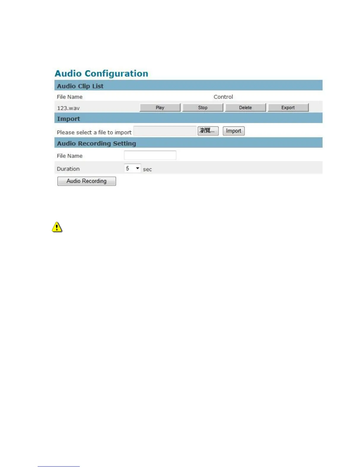 NOTE – The camera can only play audio clips which are saved as .wav files with G.711