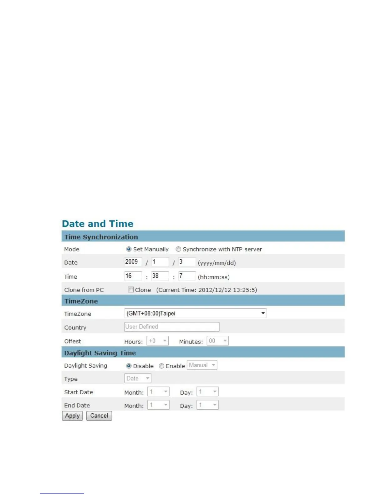 system. Select to update the time with a NTP server on an hourly, daily, weekly, or monthly