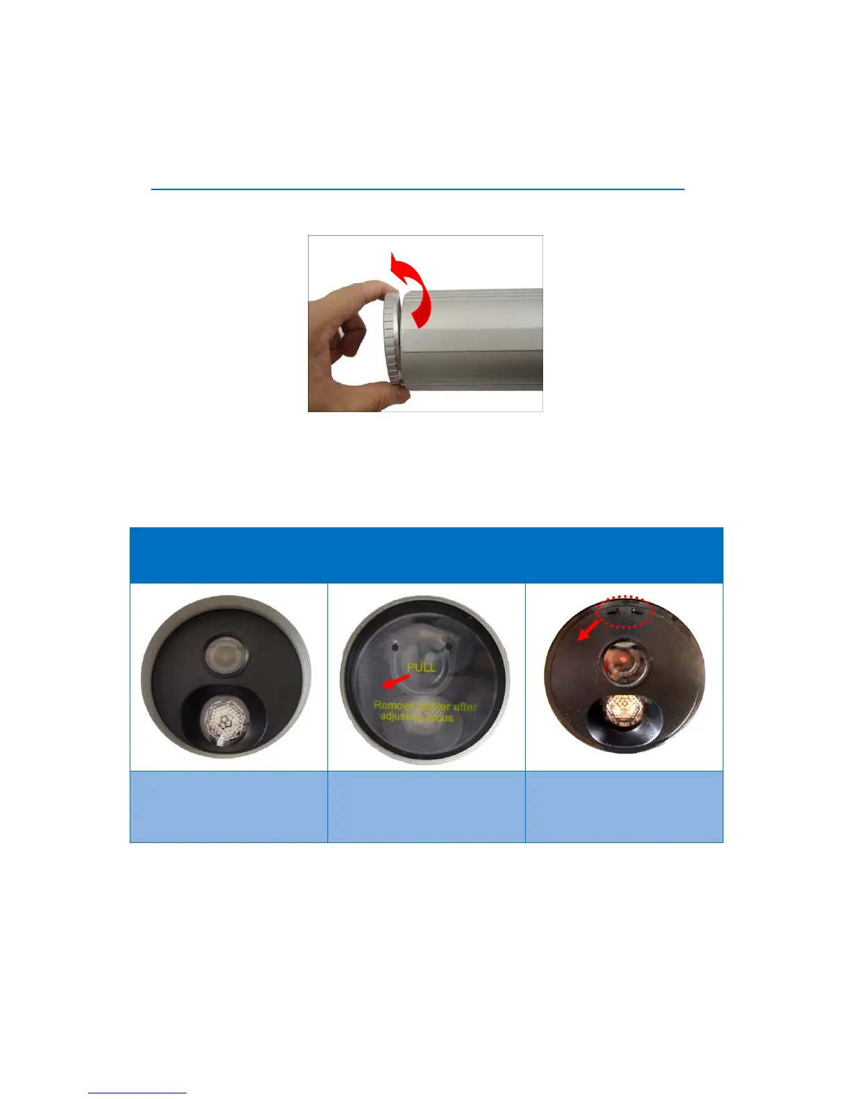 adjusting the focus. The sticker cannot be reattached to the front cover. If the focus needs to