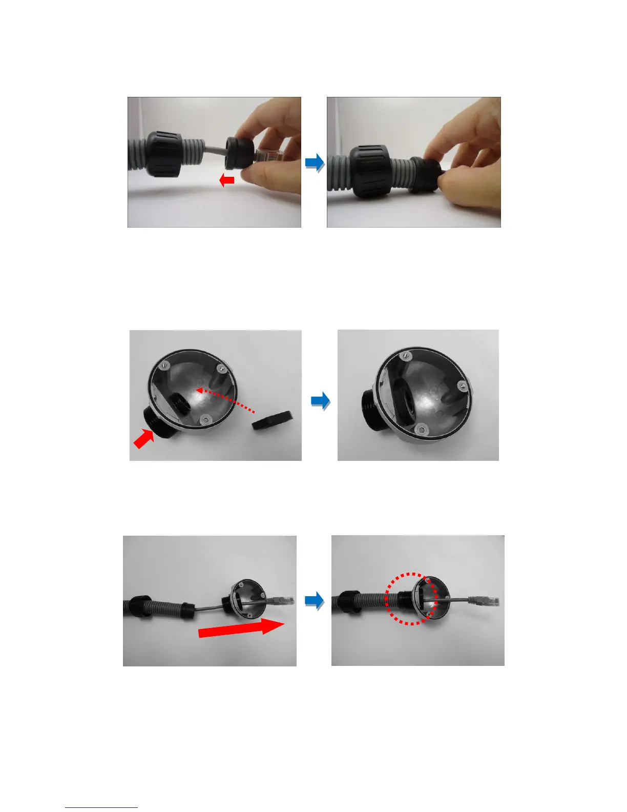 2. Insert the Ethernet cable through the back cover and then align the sealing insert