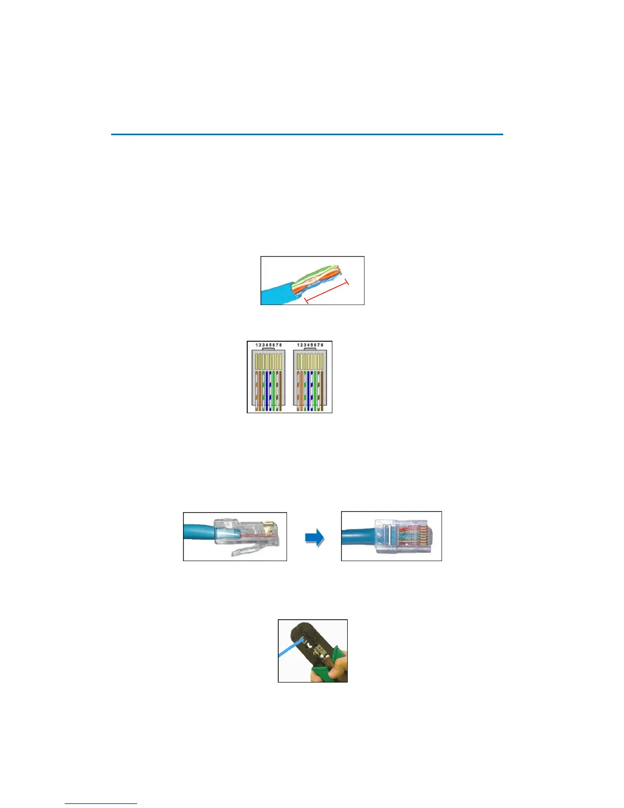 6. With the RJ-45 connector tab facing down, push the wires into the connector all the way to