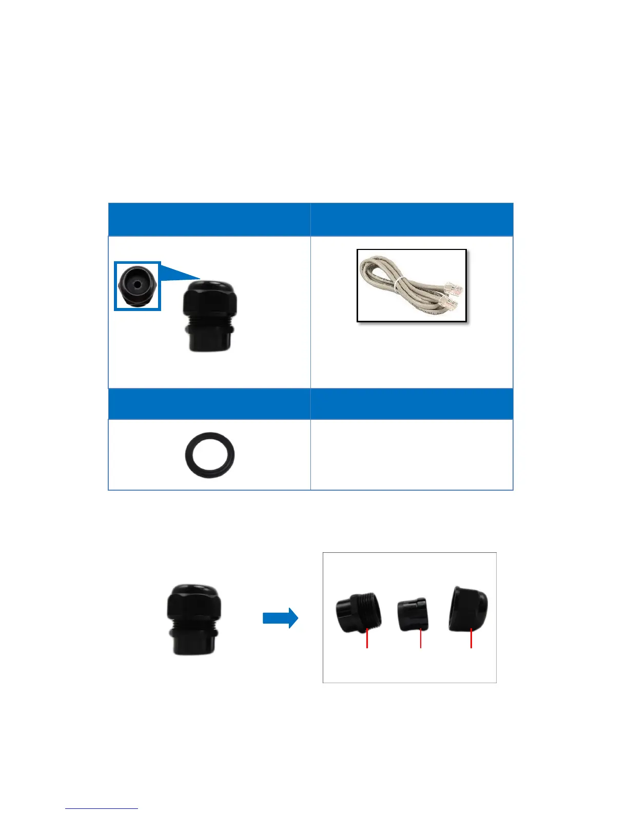 bundled cable gland. An exterior-grade Ethernet cable is required. The camera may or may not