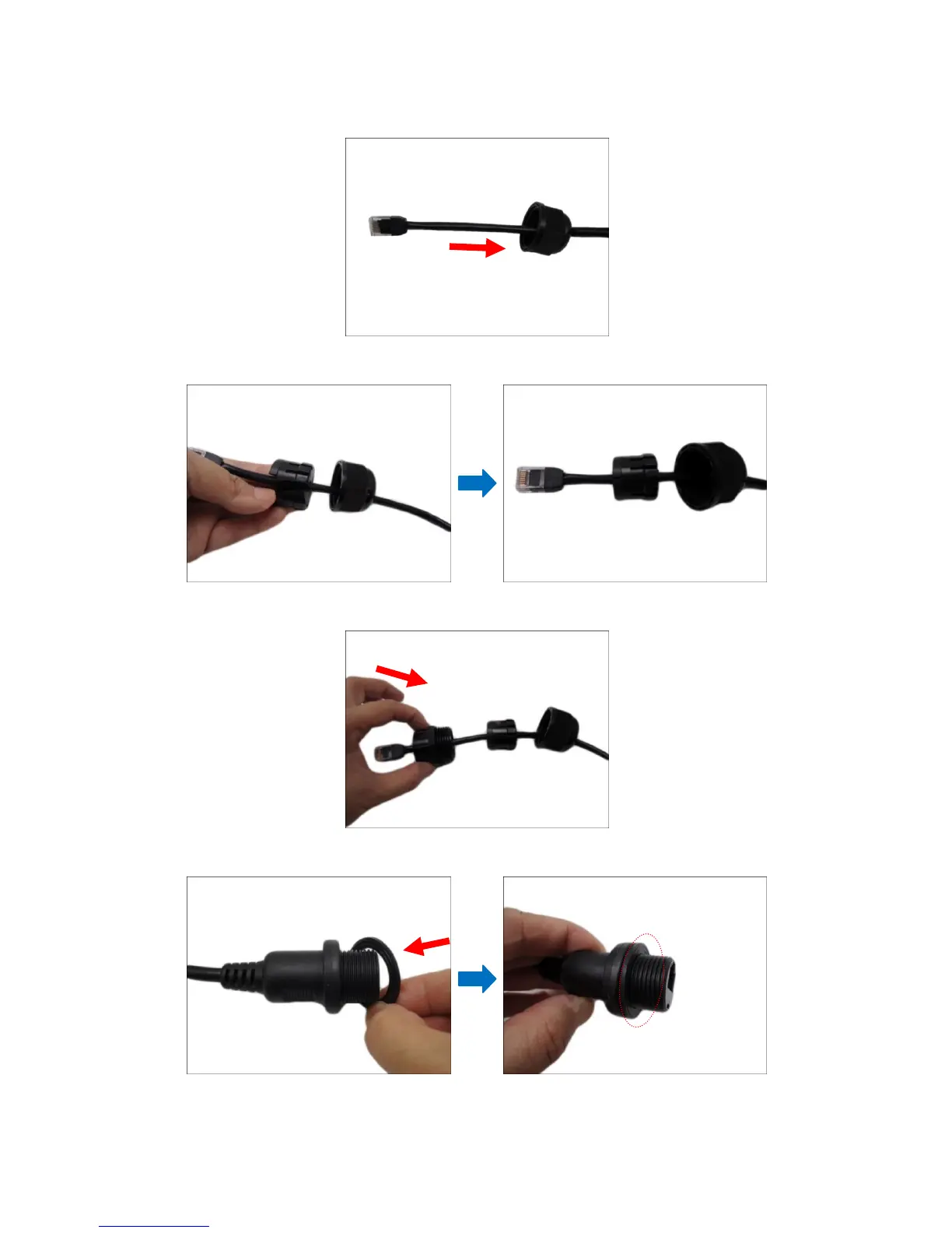 4. Insert the gland body into the Ethernet cable.