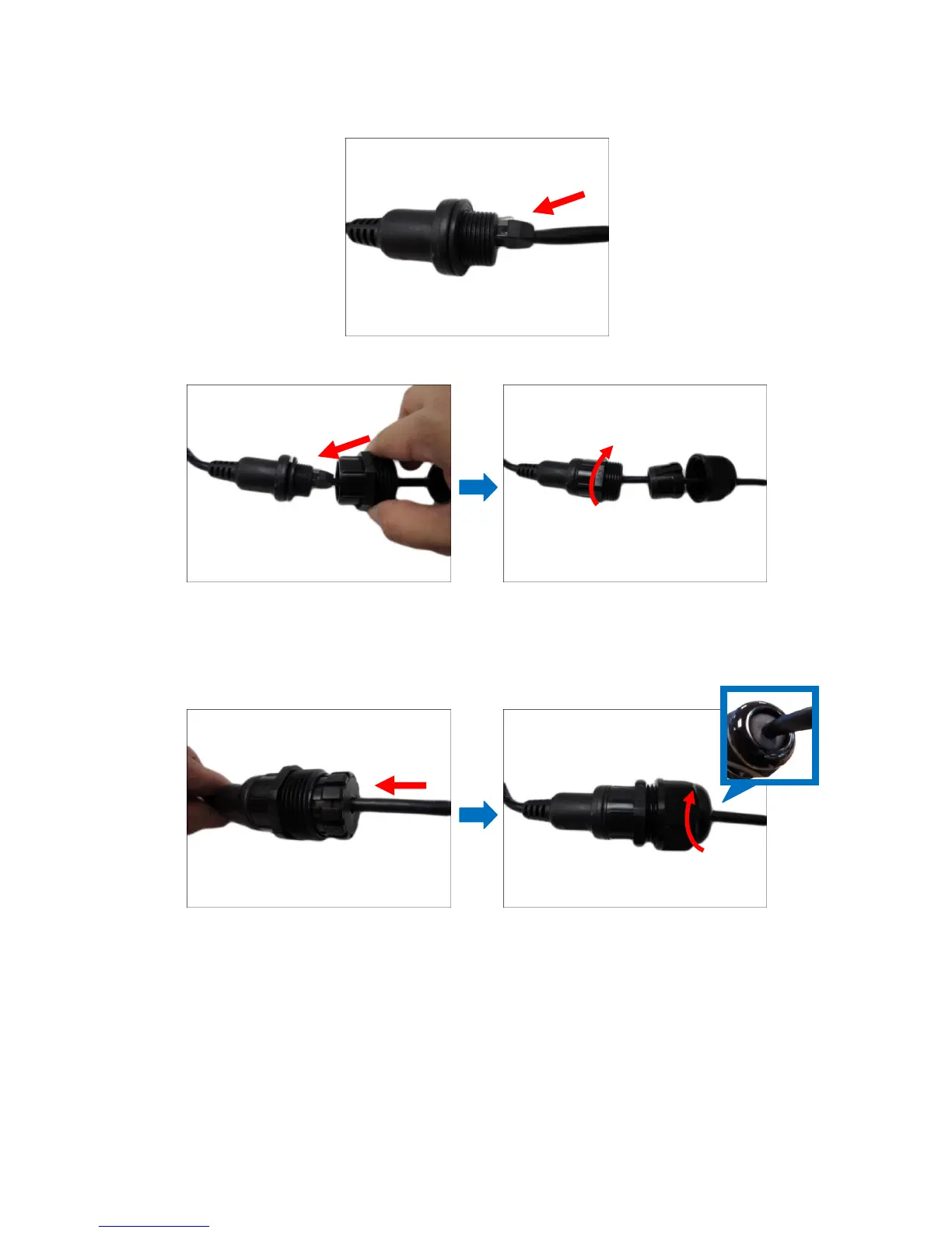 6. Connect the Ethernet cable connector to the “pigtail” connector.