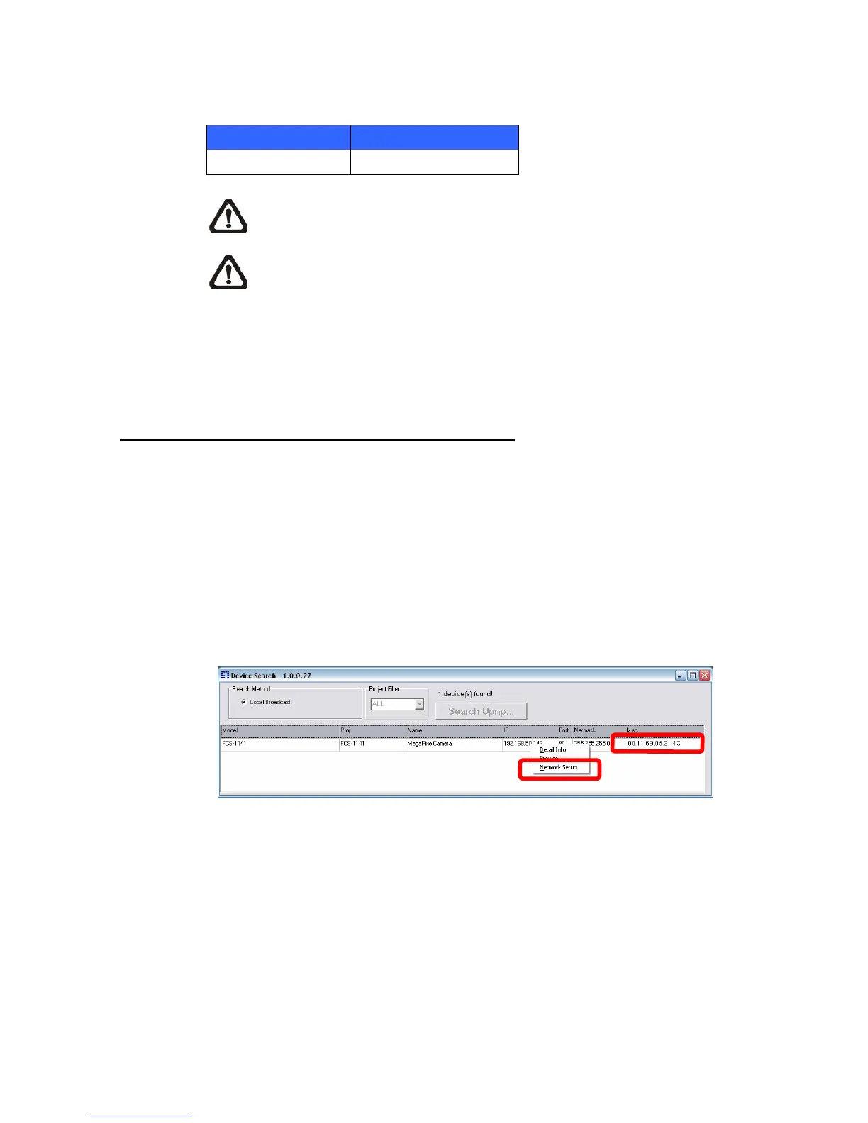 in the finding device list. The way to change the IP Camera’s network property is specified