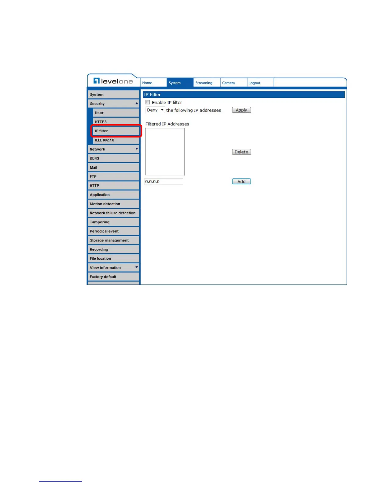 Check the box to enable the IP Filter function. Once enabled, the listed IP