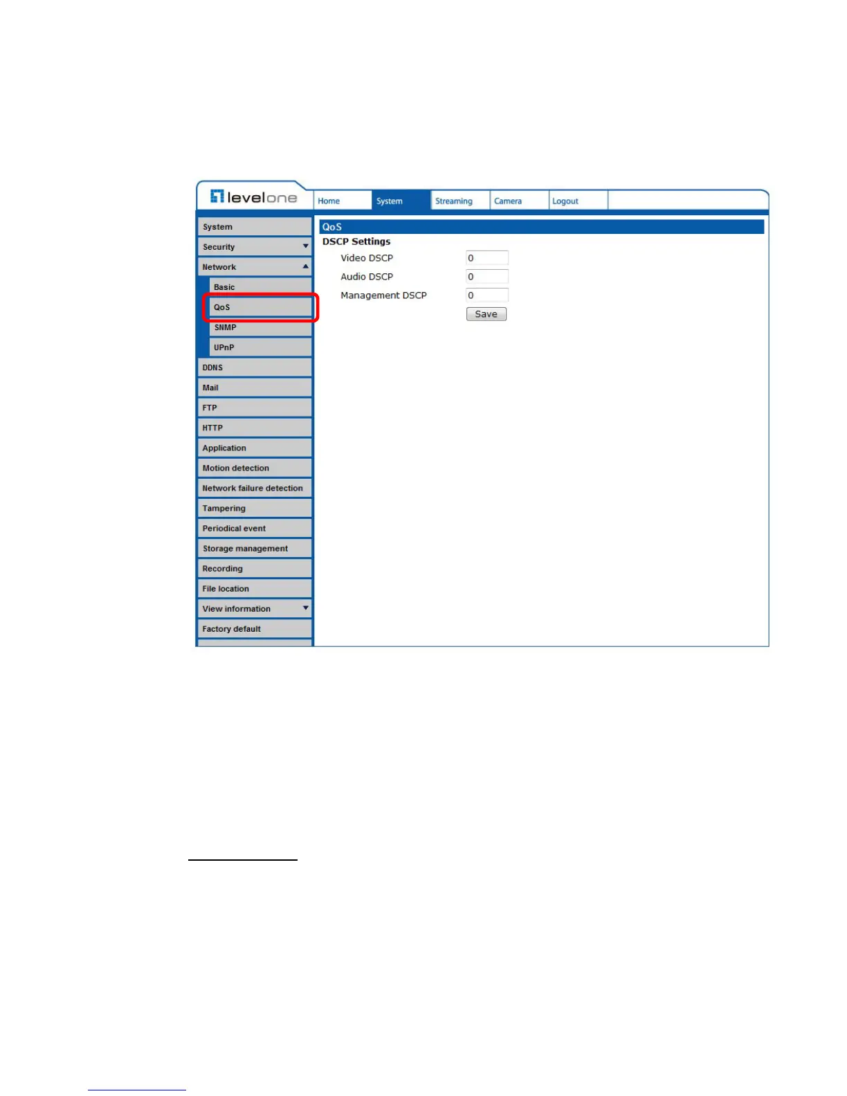 means DSCP is disabled. The IP Camera uses the following QoS Classes: