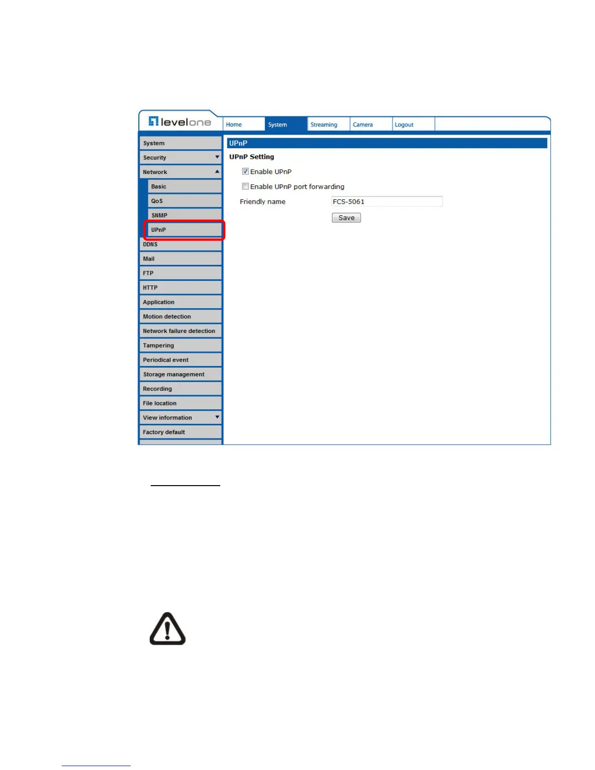 The UPnP setting can be found under this path: System> Network> UPnP.