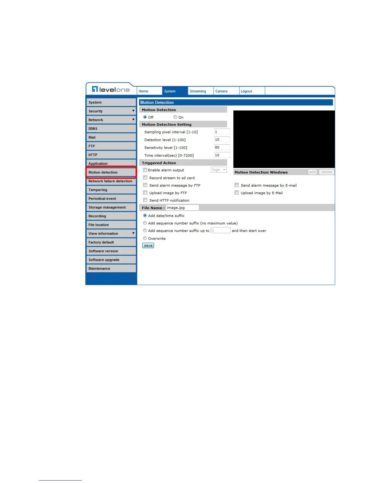 Window) displayed on the Live View Pane. The Motion Detection Window is for