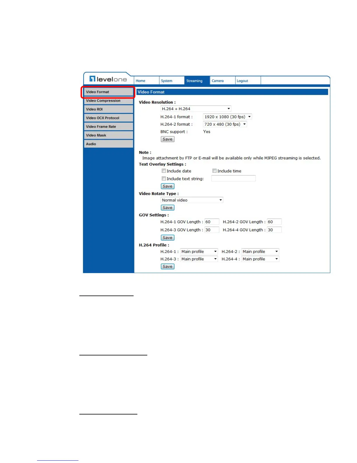 Click on <Save> to confirm the Text Overlay setting.