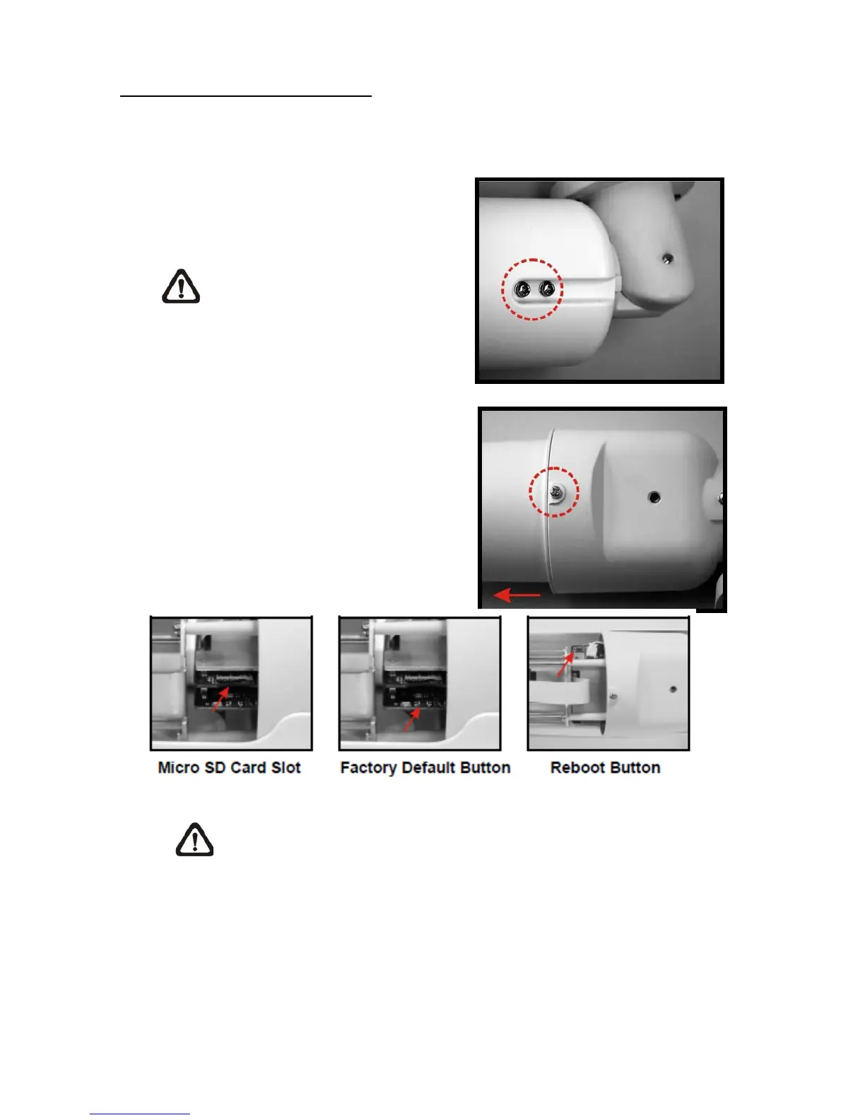 Follow the steps below to reach the Micro SD Card Slot, Reboot Button and Factory Default