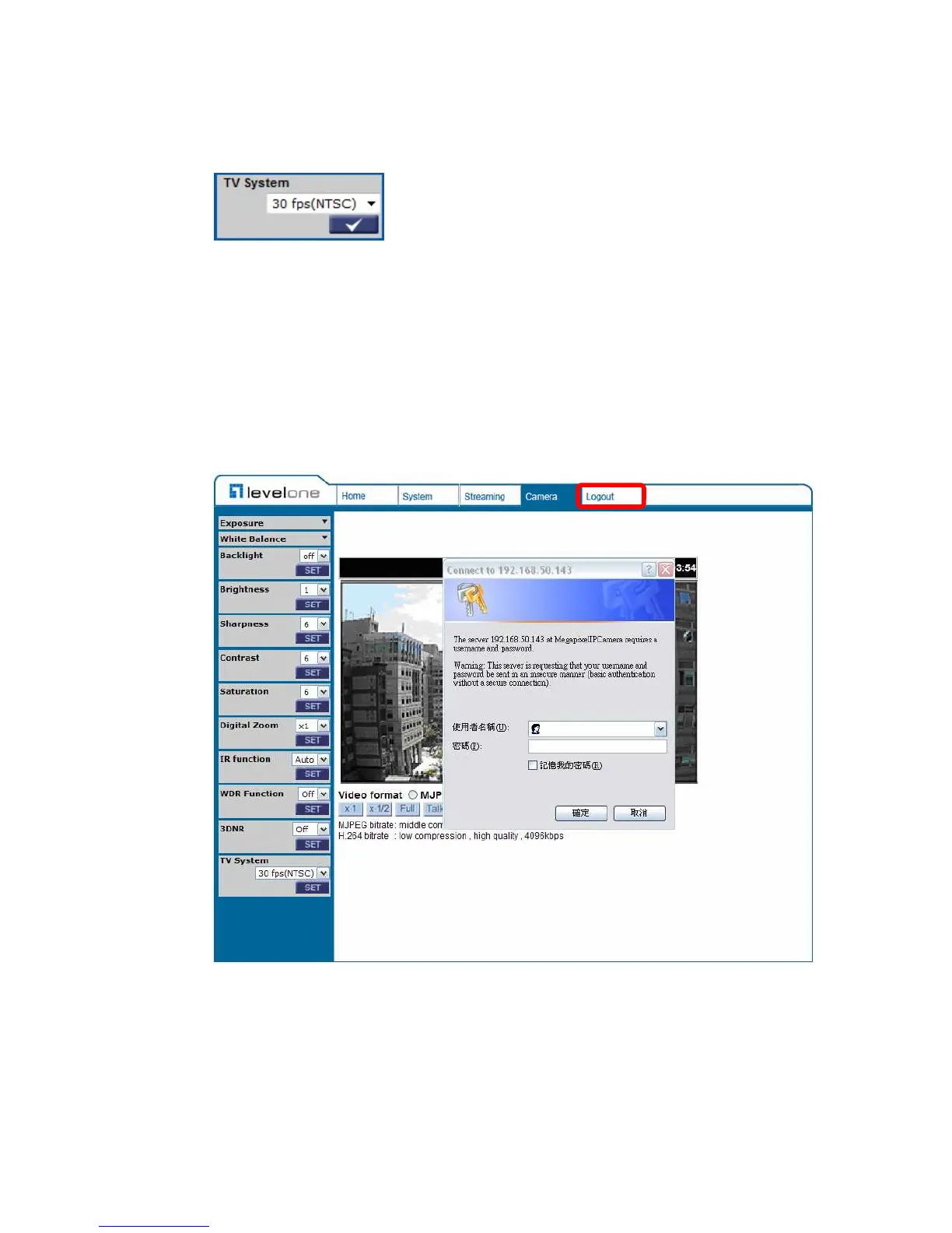LevelOne FCS-5061 - Logout; TV System Setup