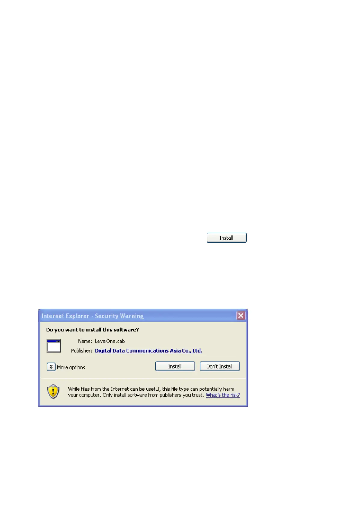 for permission to install a new plug-in for the Network Camera on the Internet Explorer.